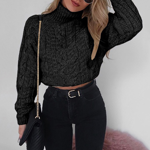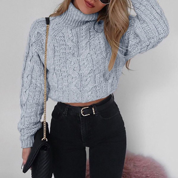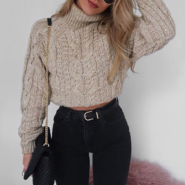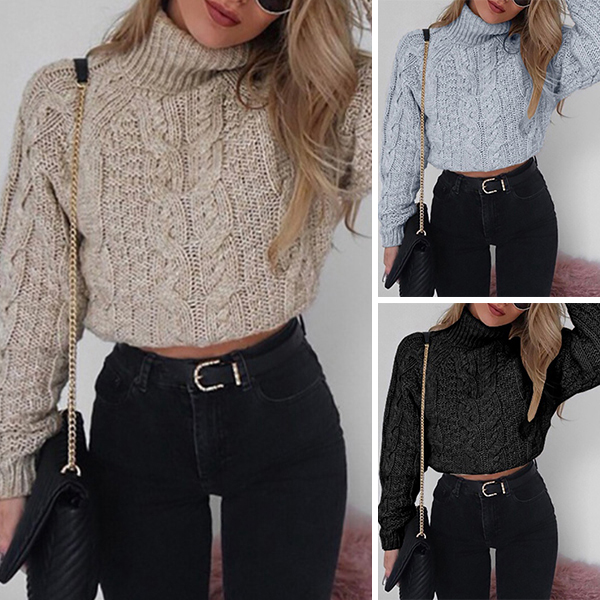 This is a good knitted sweater for some chilly days.Solid color style,with long sleeve and high-neck design,