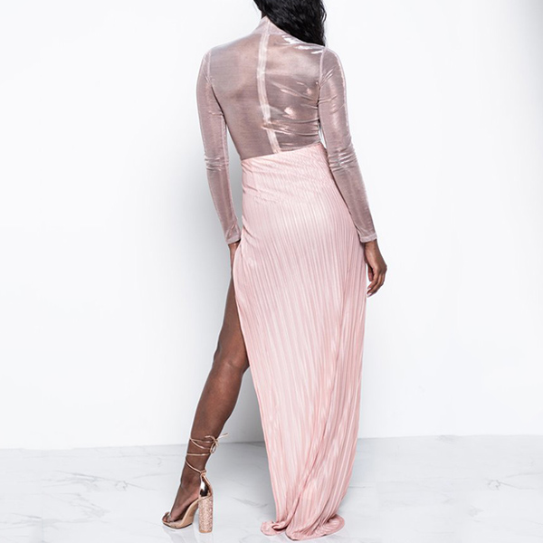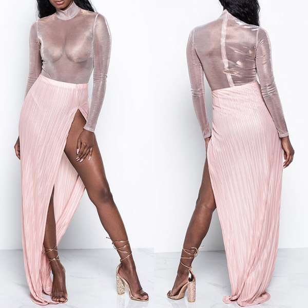 Seductive appeal comes easily when you slip into this alluring dress. See-through style and high slit