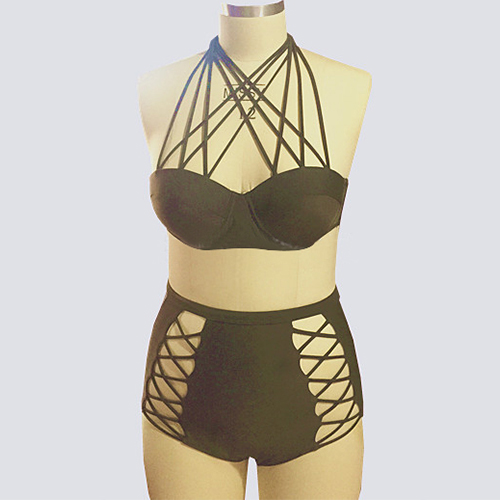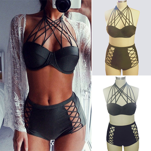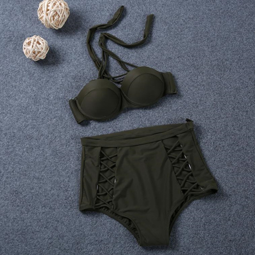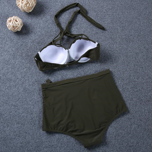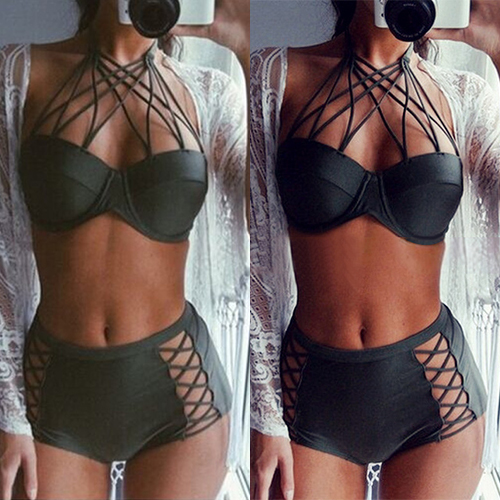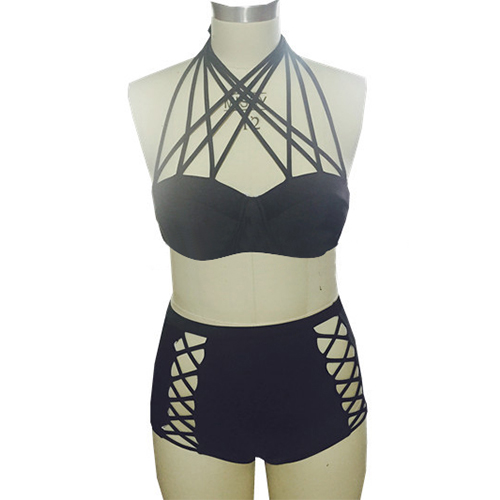 Solid color style,including a crossover halter bra and a high waist hollow out briefs,this bikini set