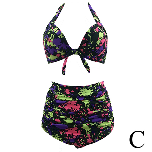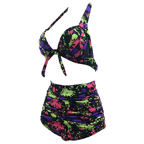 including a halter bra and a high waist briefs,this bikini set is sure to make you stand out on the beach.