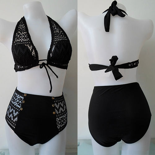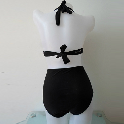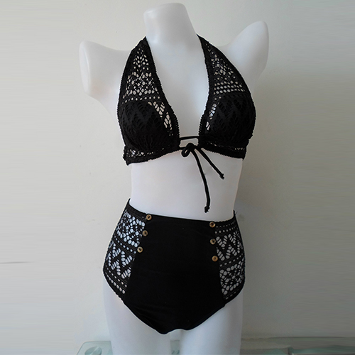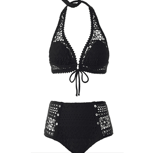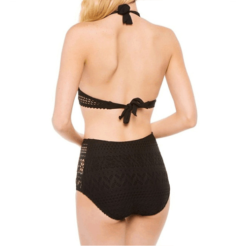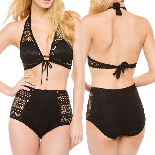 Hollow out style,including a halter bra and a high waist briefs. It will give you a happy and unforgettable seaside trip!