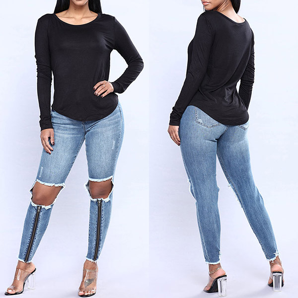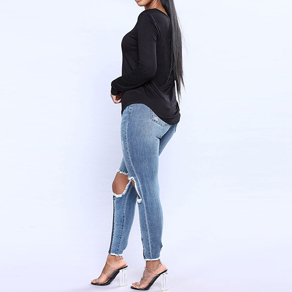 The high waist and skinny silhouette design can showcase your slender figure,while the hollow out ripped