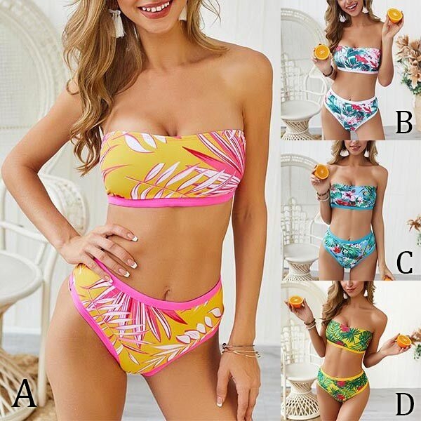 Including a bandeau bikini top and a high waist bikini bottom,this bikini set also can showcase