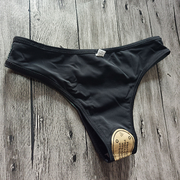 Have a fun and memorable day on the beach with this swimsuit set. Consists of a hollow out black bikini top and a low-waist