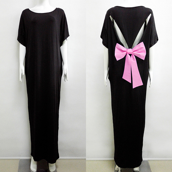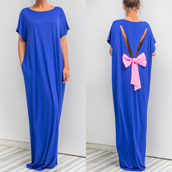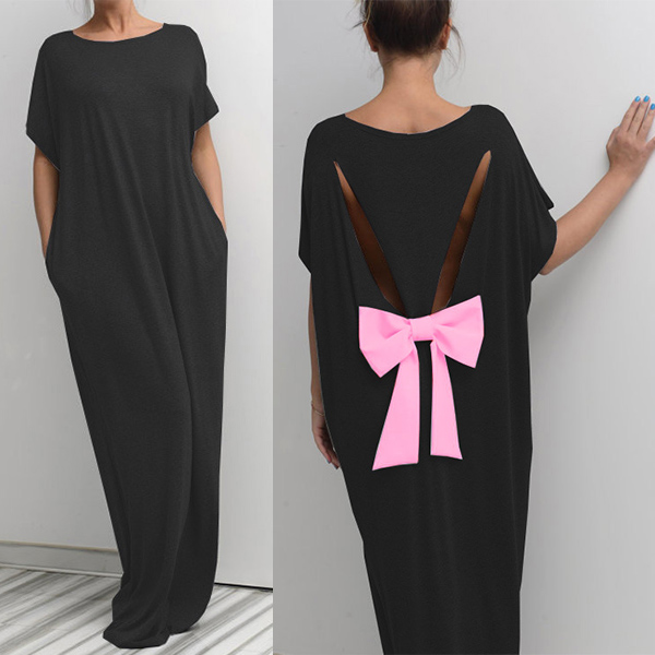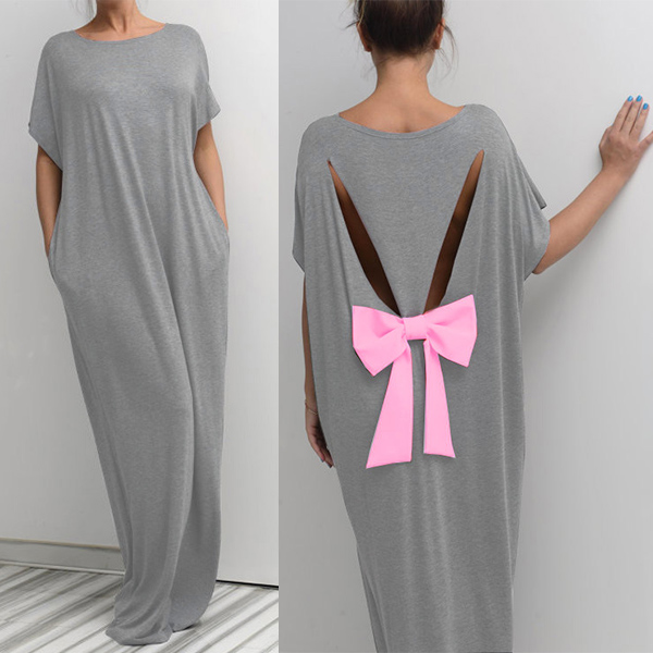 Designed with short sleeve,round neck and a maxi length,cozy and stylish. On the other hand,its hollow out and bowknot design