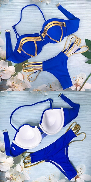 When invited to a bikini party,you can trust in this bikini set to help you the the sexiest girl! The contrast color and hollow out design will further enhance its