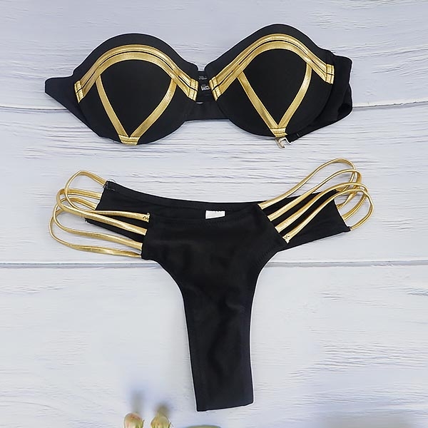 charm. Including a bandeau top and a low-waist briefs,this bikini set can showcase your seductive curve. Matching with a printed beach towel would be a good idea.