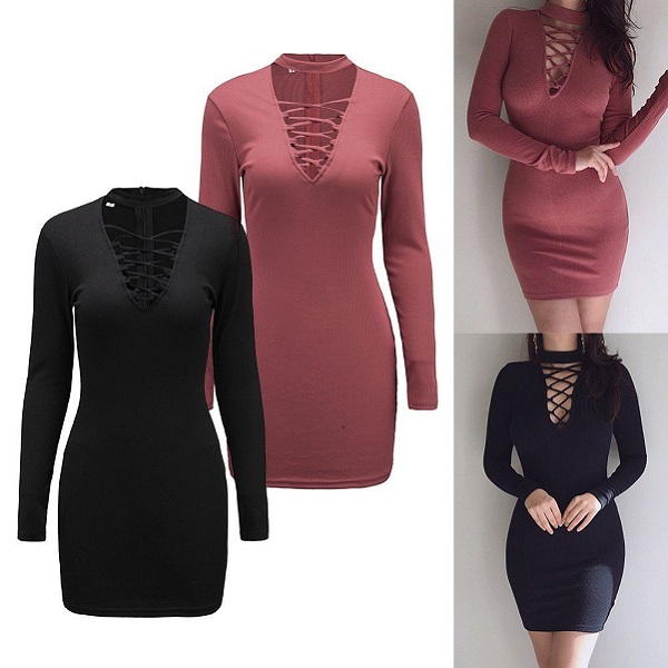 Exude your female appeal and seductive curve through this tight dress. It boasts a solid color,the crossover hollow