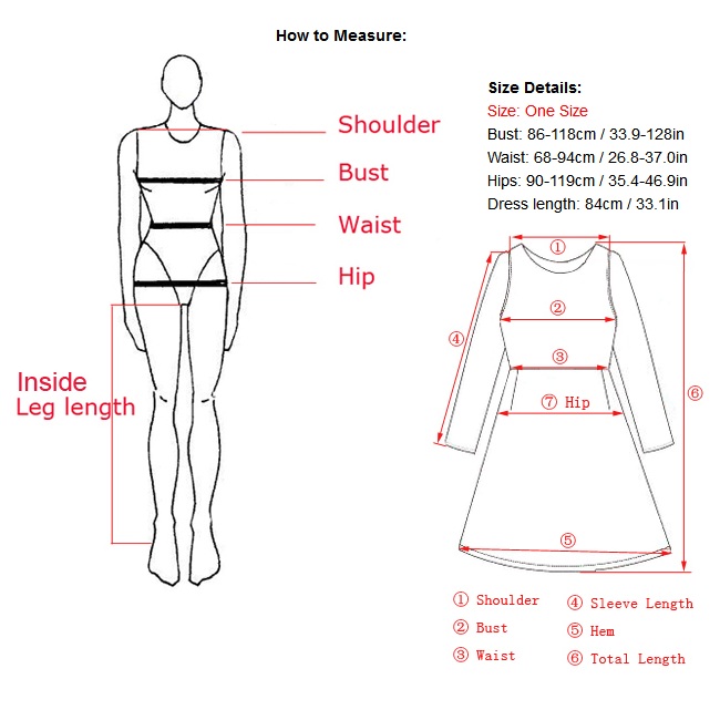 Bust : 86cm - 118cm(33.86" - 46.46"); Waist : 68cm - 94cm(26.77" - 37.01");