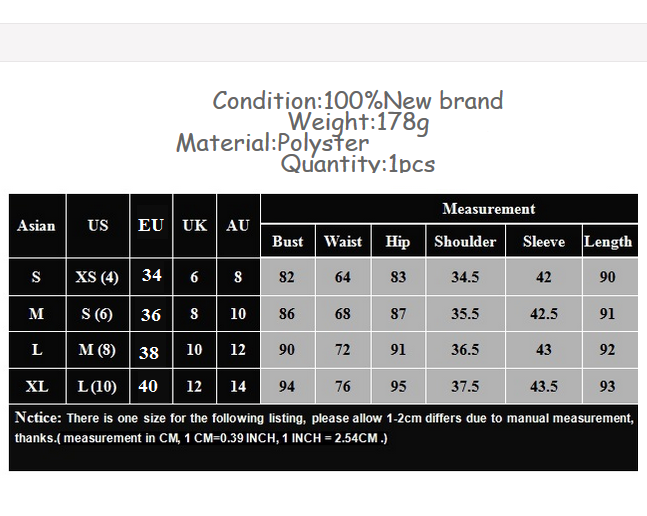 XL : Bust : 94cm(37.01"); Waist : 76cm(29.92"); Hips : 95cm(37.4");