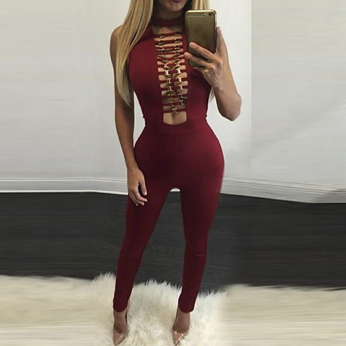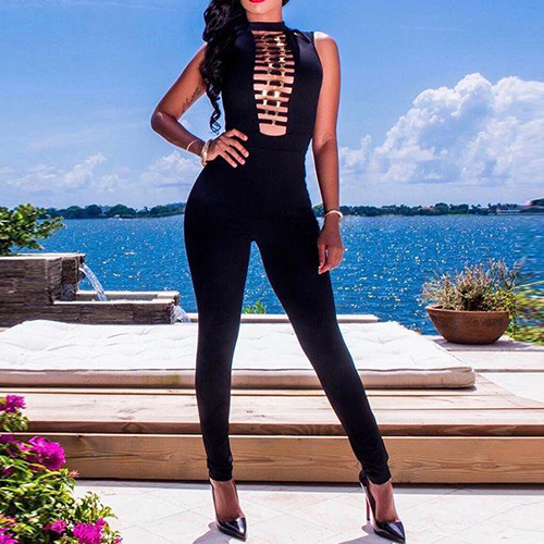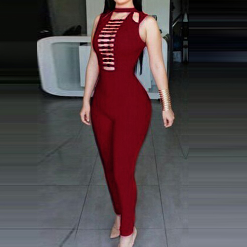 A sultry look will instantly appear once you slip into this jumpsuit! Outfitted with sleeveless,hollow out deep