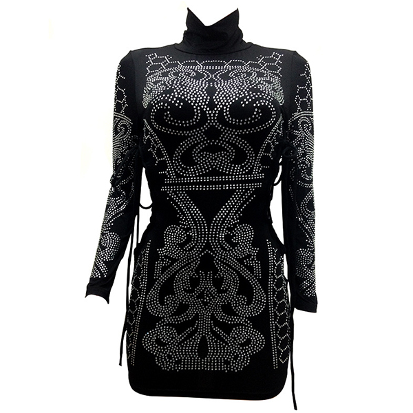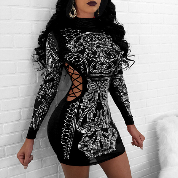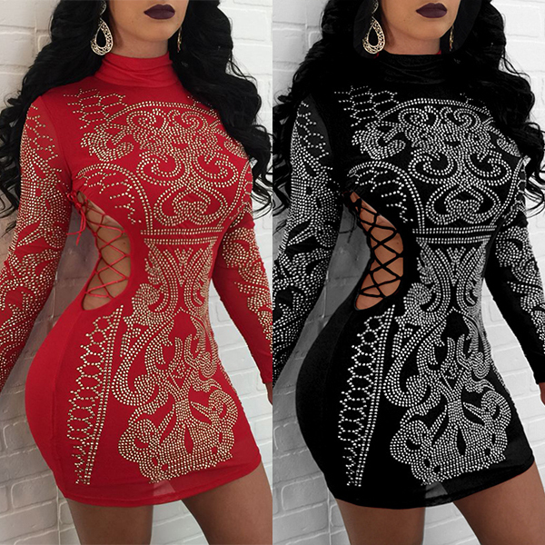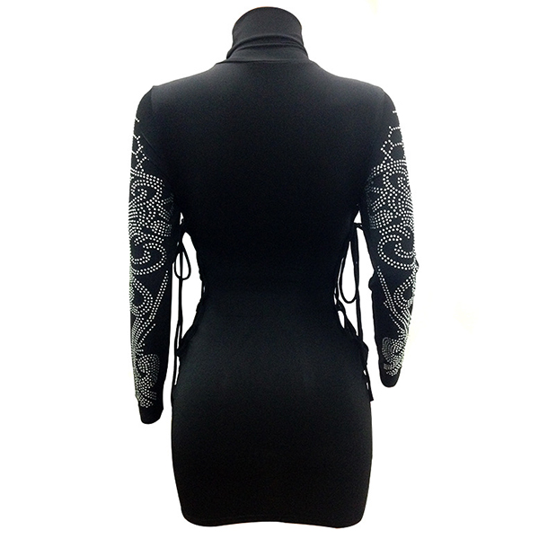Sexy Hollow Out High Waist Long Sleeve Mock Neck Tight Dress