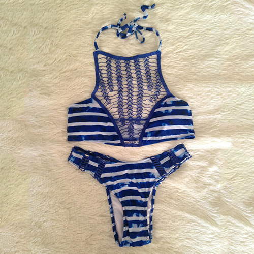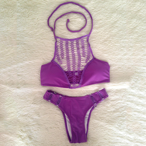 Wow,such a sexy and chic bikini! Its hollow out knit spliced design makes it look so sexy and unique.