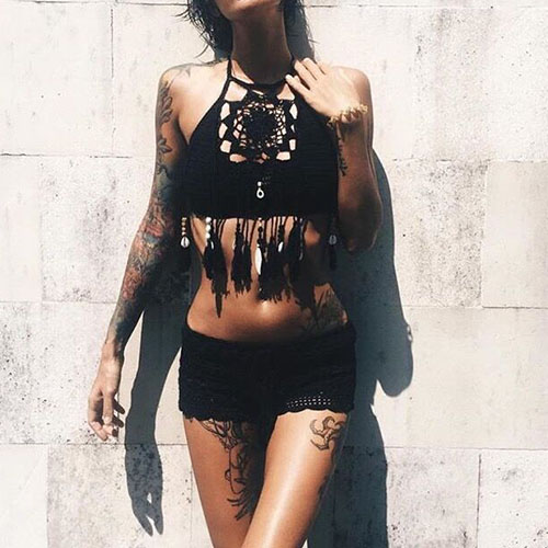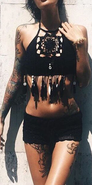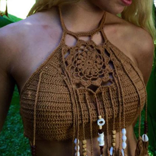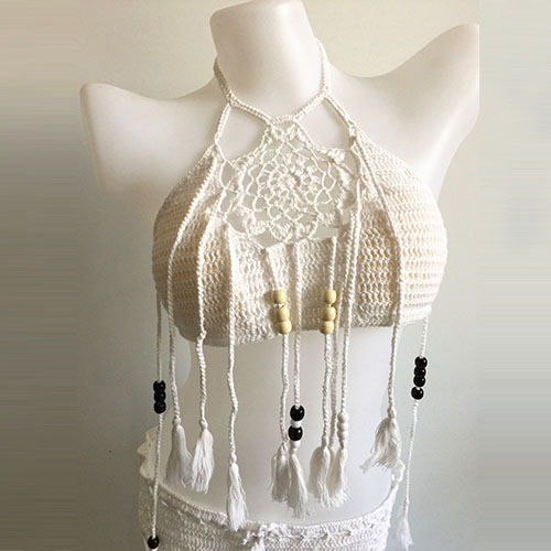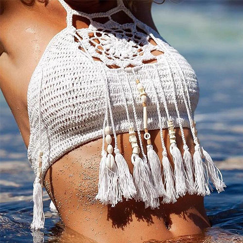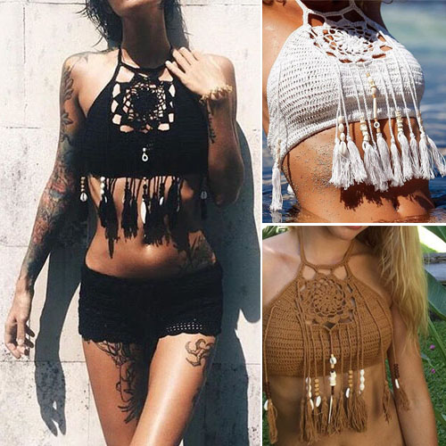 Hollow out knit style with tassel design makes this bikini look so unique,sexy and charming.