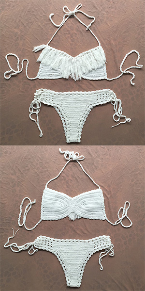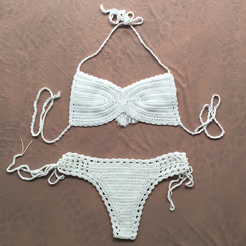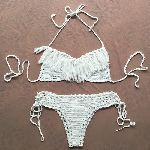 Sexy Hollow Out Knit Tassel Halter Bikini Set