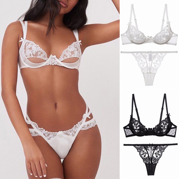 Hey,girls,start your sexy road from this sexy underwear set! Including a hollow out lace bra anda thongs,this underwear set can perfect sketch out your seductive curve. Love yourself,from thissexy underwear set!