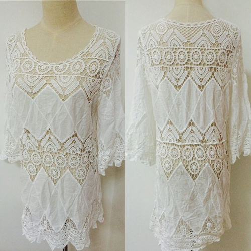 Hollow out lace spliced style,with 3/4 sleeve and round neck design,sexy,