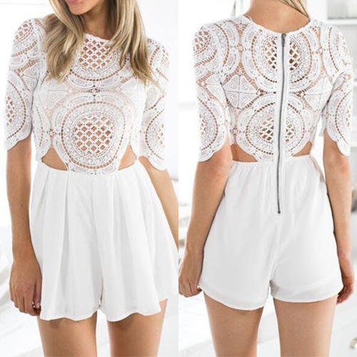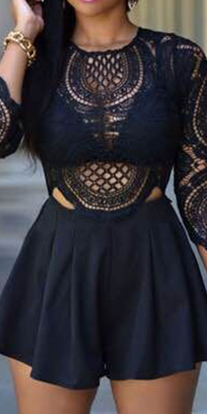 This romper is the perfect blend between femininity and function. Hollow out lace spliced style,