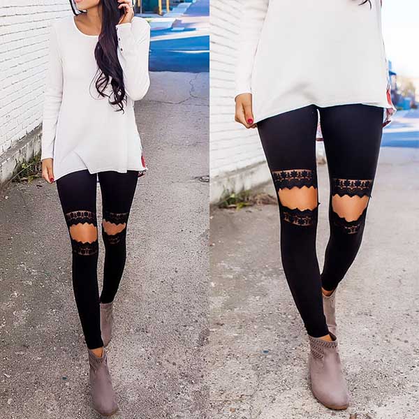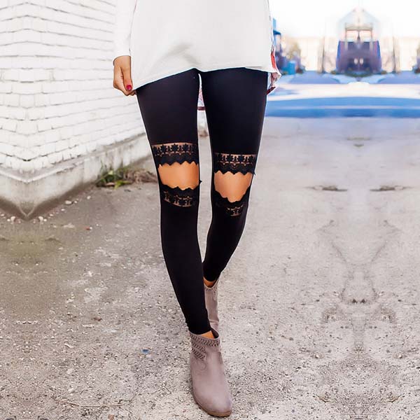 as enjoy an utmost comfort. The most attractive design of this piece is the hollow out lace spliced design at knee part.