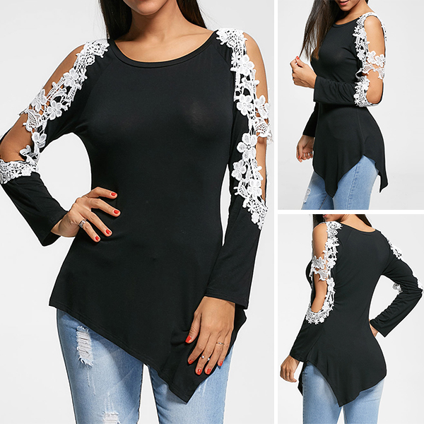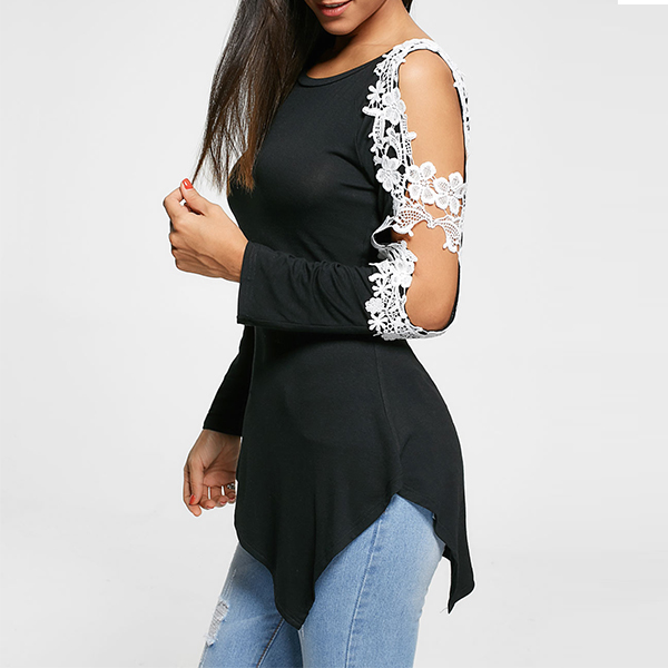 while the hollow out lace spliced and irregular hem design make this piece look more charming and sexy. Like this different