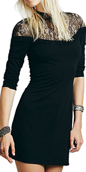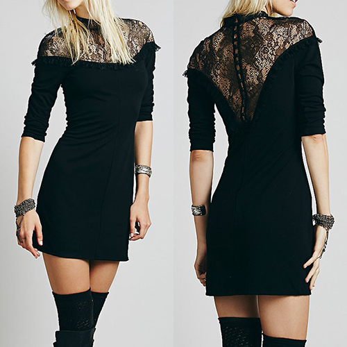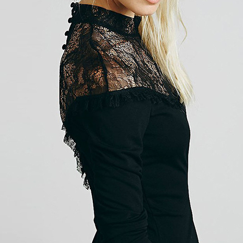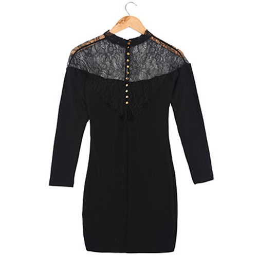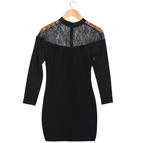 Add this sultry and feminine dress to your wardrobe. Hollow out lace spliced deisgn