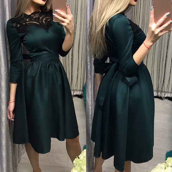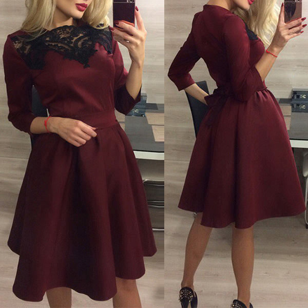 styled with 3/4 sleeve,round neck and high waist design,this dress is a good way to showcase your slender figure.