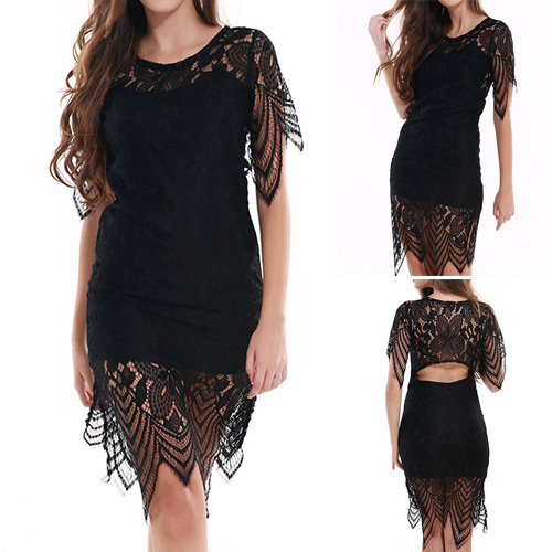 style,finished with short sleeve,round enck,irregular hem and a cutout at back,this dress is a perfect definition of alluring and feminine appeal.