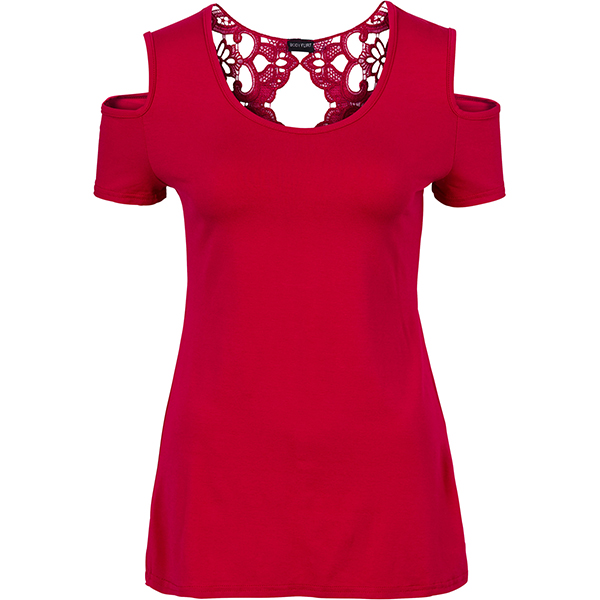 at back. Solid color style,its hollow out lace spliced and irregular hem design at back make this piece sexy and alluring.
