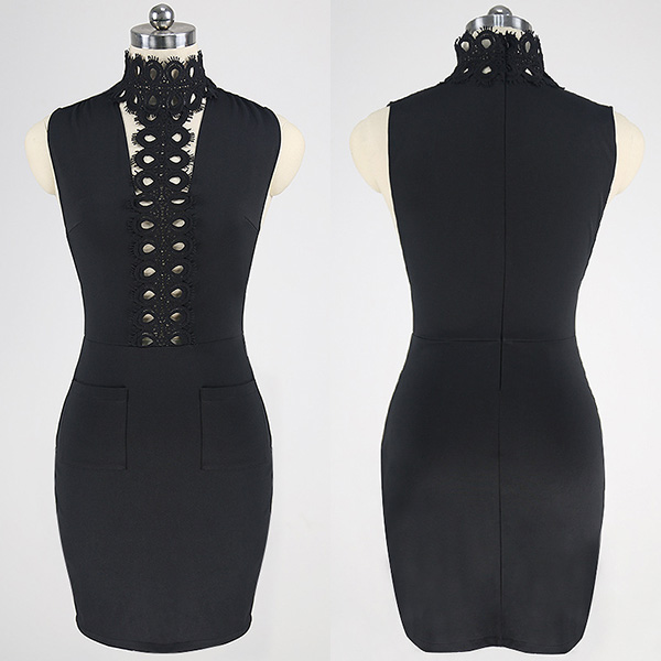 accompanied with sleeveless,mock neck and a bodycon silhouette,this delicate dress is one of the easiest ways to demonstrate