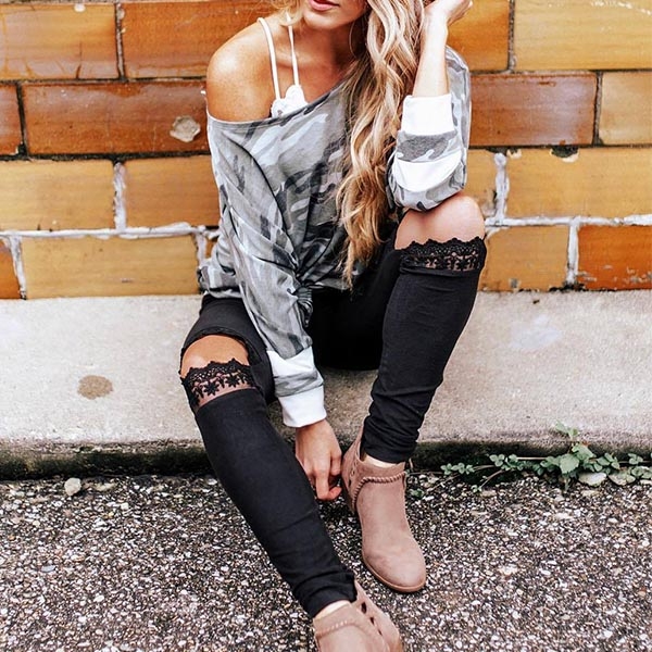 spliced design at he knee part makes this piece look more attractive. Add it to your wardrobe!