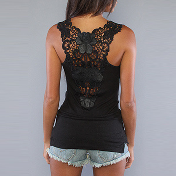 Cozy yet feminine,this is what this tank top can bring for you! Solid color style,its hollow out lace spliced design is the