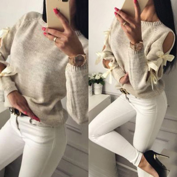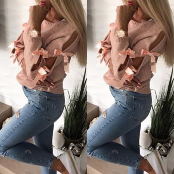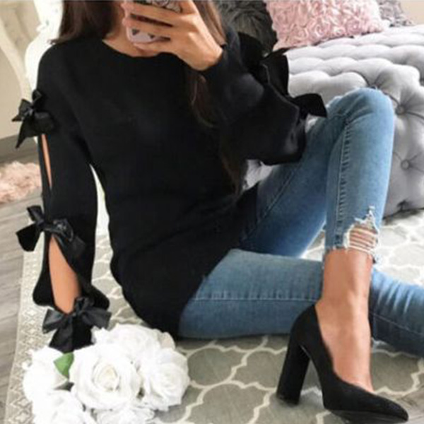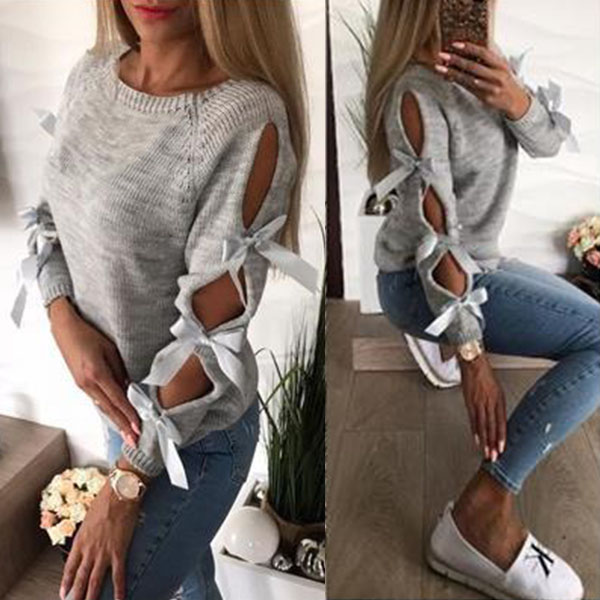 Solid color style,the hollow out and lace-up bowknot design at the sleeve part make this