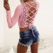 sleeve crop top. The lace-up and lace spliced design at the back side make this piece look so sexy,
