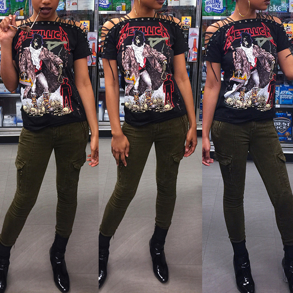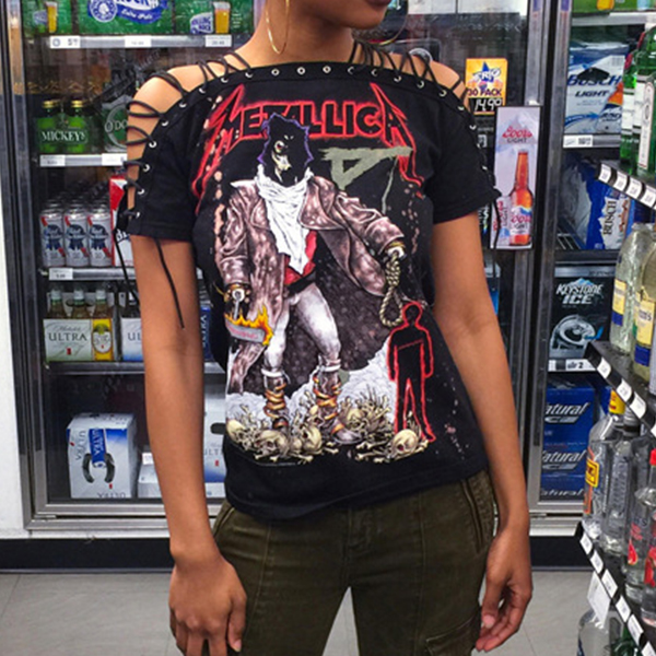 Wow,have you ever seen such a chic and unique t-shirt? The hollow out lace-up and chic printed pattern are the