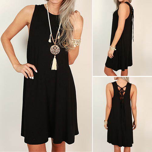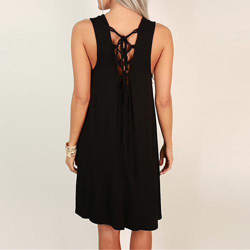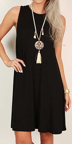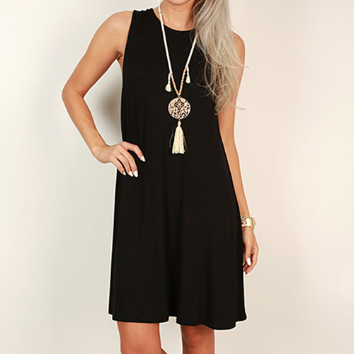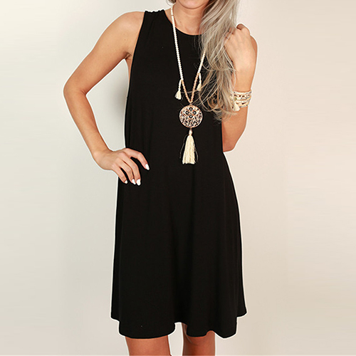 Solid color style,with sleeveless,round neck and a loose silhouette,this dress can keep