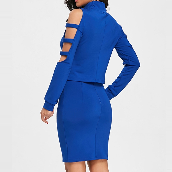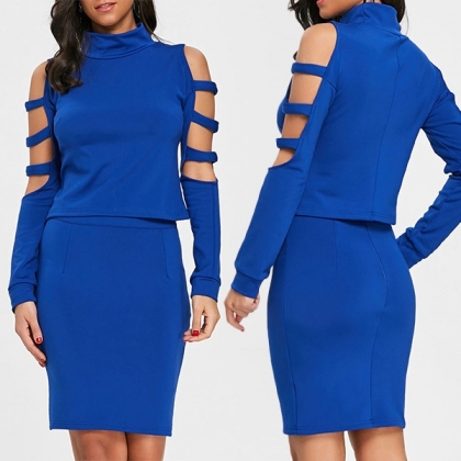 including a long sleeve mock neck top and a high waist skirt,this two-piece set can showcase your