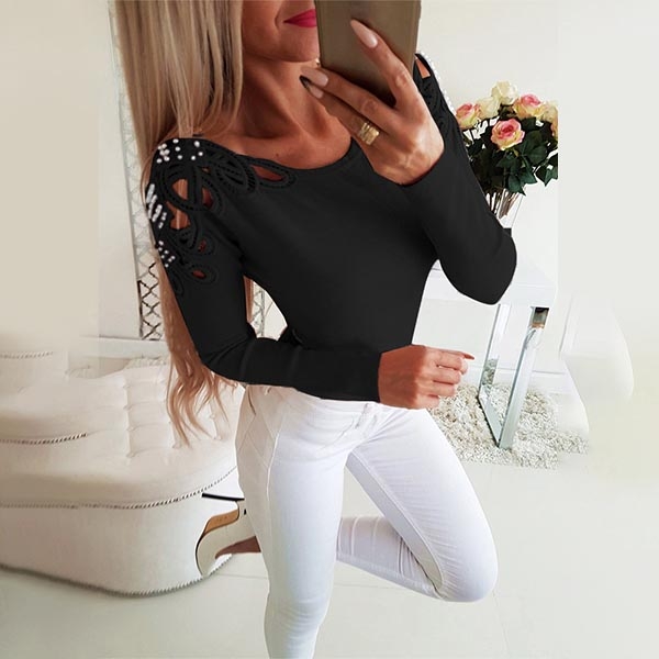 When it comes to a cozy yet feminine style,you can totally trust in this t-shirt. The hollow out design