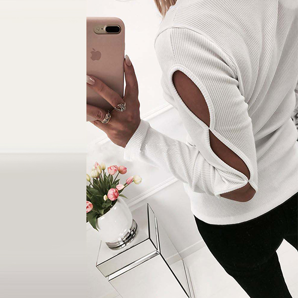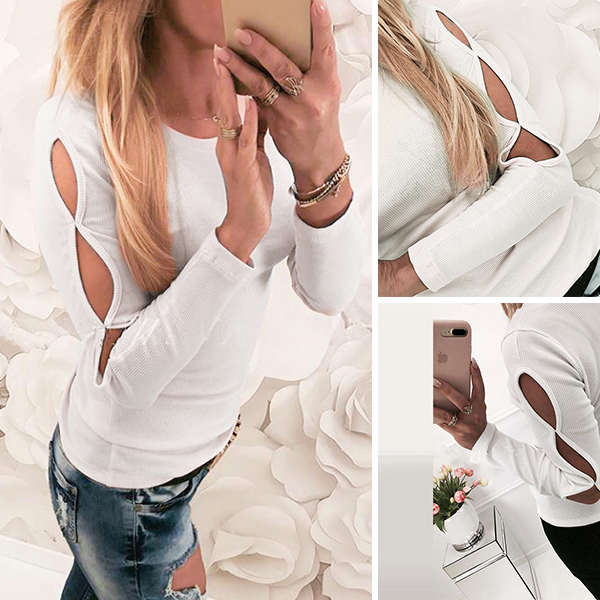 silhouette,which can ensure you a comfortable day. Moreover,the hollow out design at sleeve part makes this