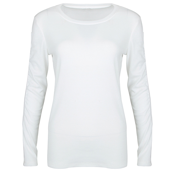 This t-shirt features a white tone,crafted from soft and breathable fabric,with long sleeve,round neck and a fit