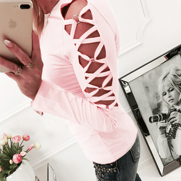 Boasts a sweet pink tone,the hollow out long sleeve design makes this piece look so sexy and distinctive,while