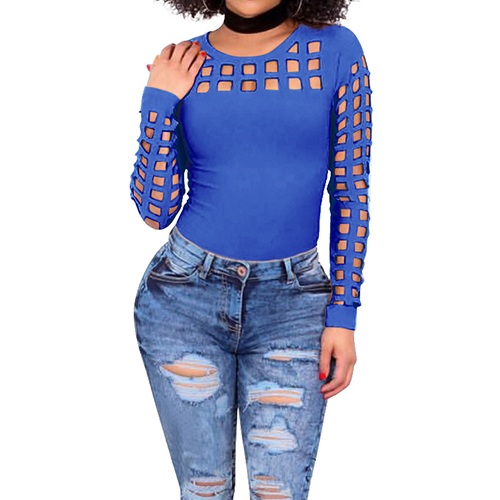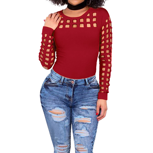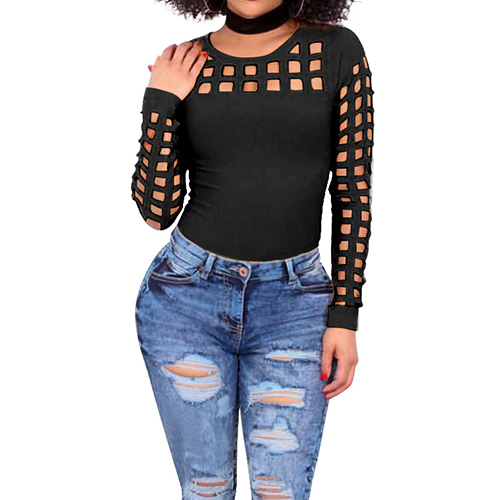 Slip into this t-shirt for a charming look. Solid color style,its hollow out details make this piece