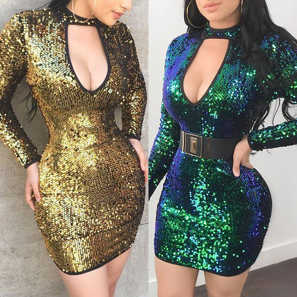 Sequin design will help you win more eyes,while the hollow out mock neck and fit silhouette design allows to showcase