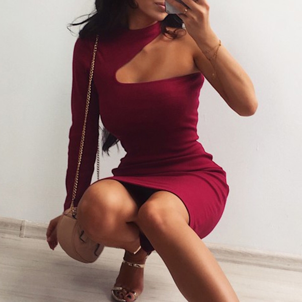 Obviously,you would arouse a splash when you wear this stunning dress. The hollow out one-shoulder