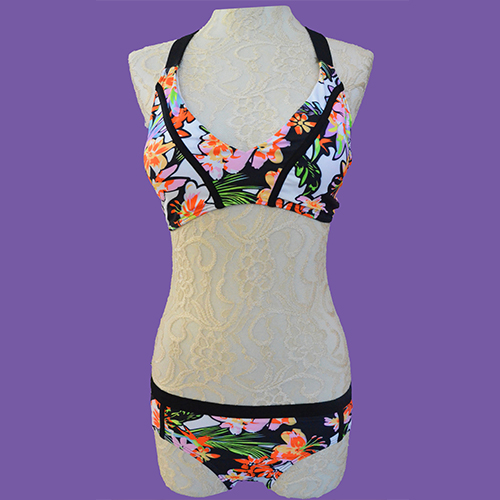 Then you can choose this bikini set! Features sweet and romantic printed pattern,with a bra and a hollow out briefs.
