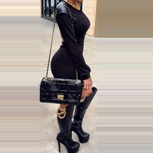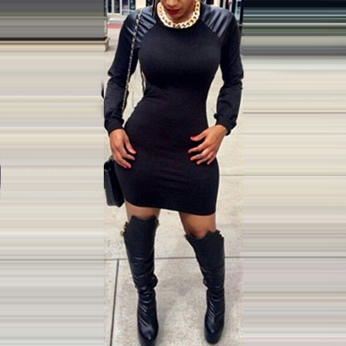 This sheath dress features PU leather spliced style,with hollow out design makes it look more sexy