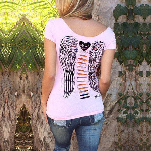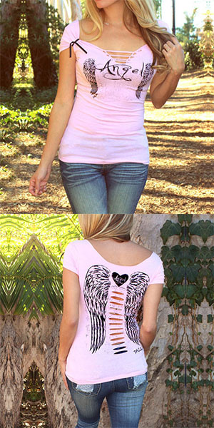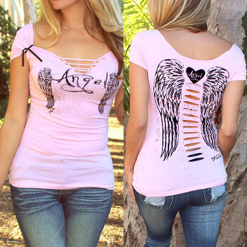 with short sleeve,v-neck and hollow out design. And its angel wings pattern makes