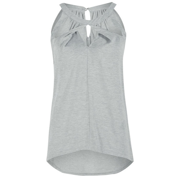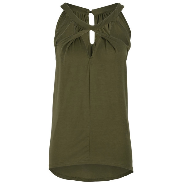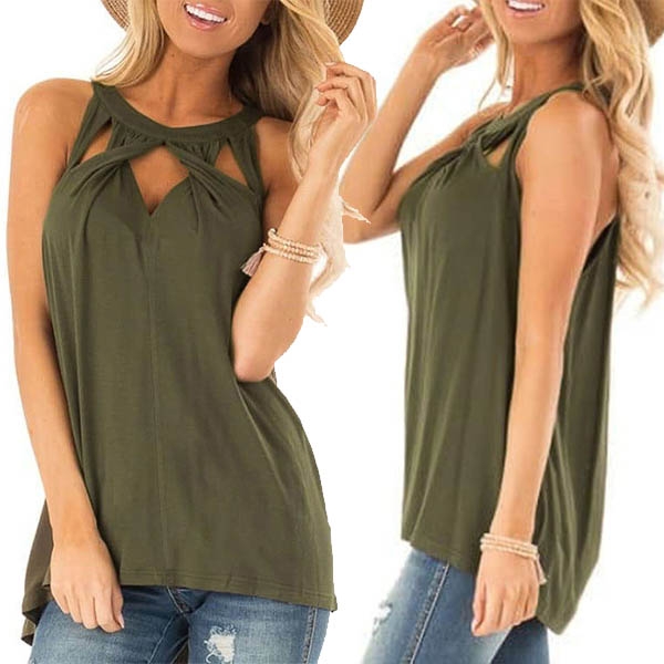 Sexy Hollow Out Sleeveless High-low Hem Solid Color Top (It falls small)