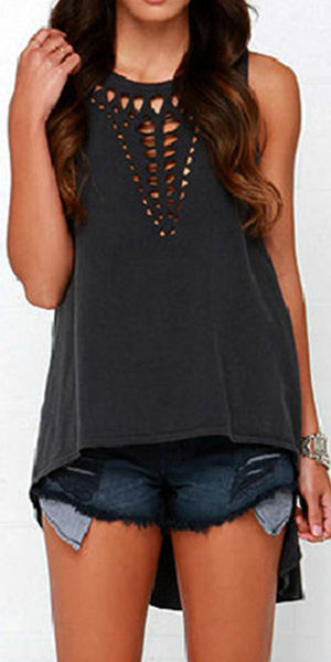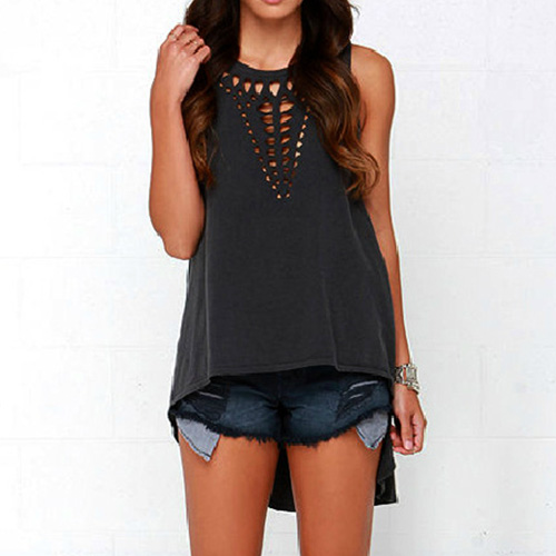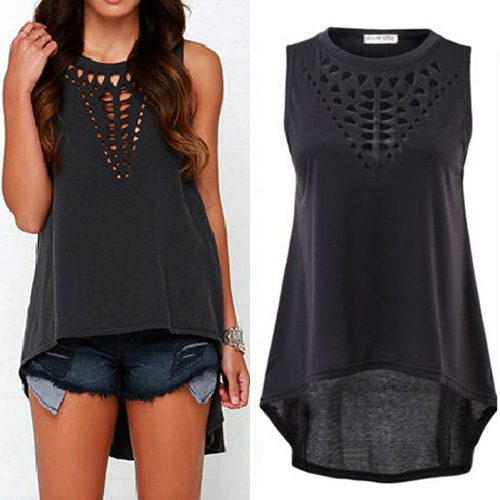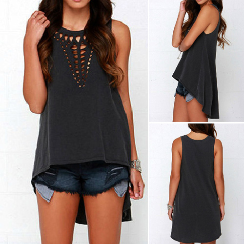 choice. Solid color style,its high-low hem and hollow out neckline design makes this piece look so chic and