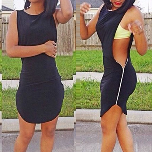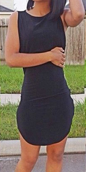This dress features a mysterious and flattering black color,outfitted with sleeveless,