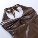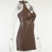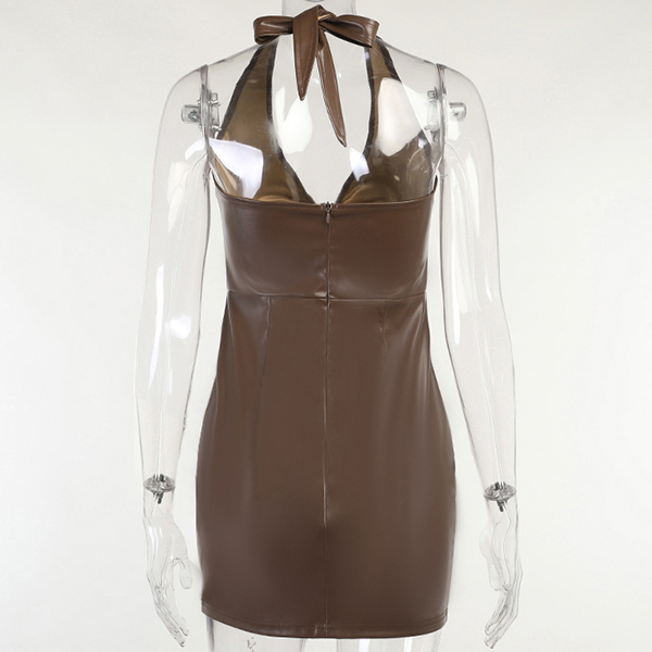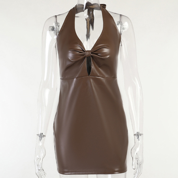 For the weekend night outs, inject some sexy appeal with this alluring PU leather mini dress. Its hollow out details and